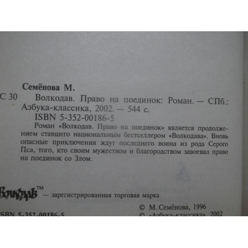 Семенова. Волкодов. Право на поединок.Издательство: Азбука-классика. 2002 год