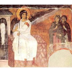 Фреска находится на южной стороне церкви и входит в композицию Жены-мироносицы. Ангел, облачённый в белый хитон, сидит на камне и своей рукой указывает женам-мироносицам на пустую гробницу Христа.