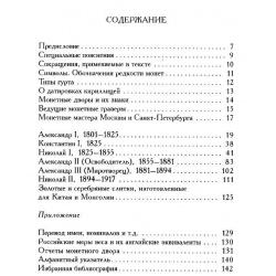 В книгах нумизмата дана идентификация и описание всех известных видов монетной чеканки Российской империи с 1682 до 1917 года. В них включены также образцы памятных жетонов по случаю коронаций, медалей исторического и персонального значения.