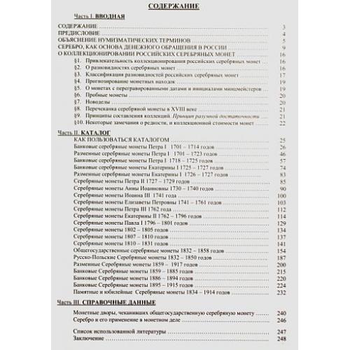 Разработана и научно обоснована классификация разновидностей общегосударственных серебряных монет. Составлено описание известных систематических разновидностей, определена их редкость и рыночная стоимость. Многие разновидности публикуются впервые. Приводятся обширные справочные данные, в том числе подробные сведения о монетных дворах, чеканивших российскую серебряную монету.