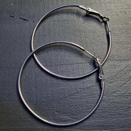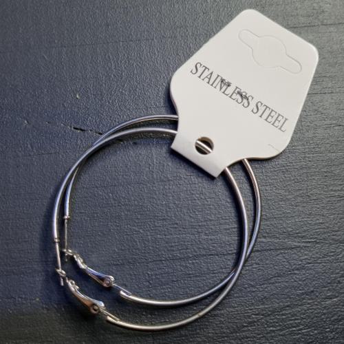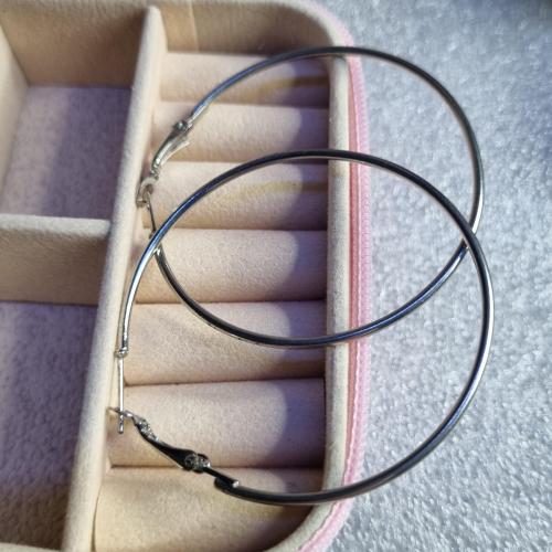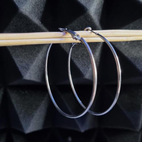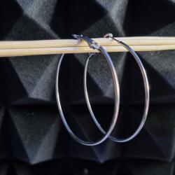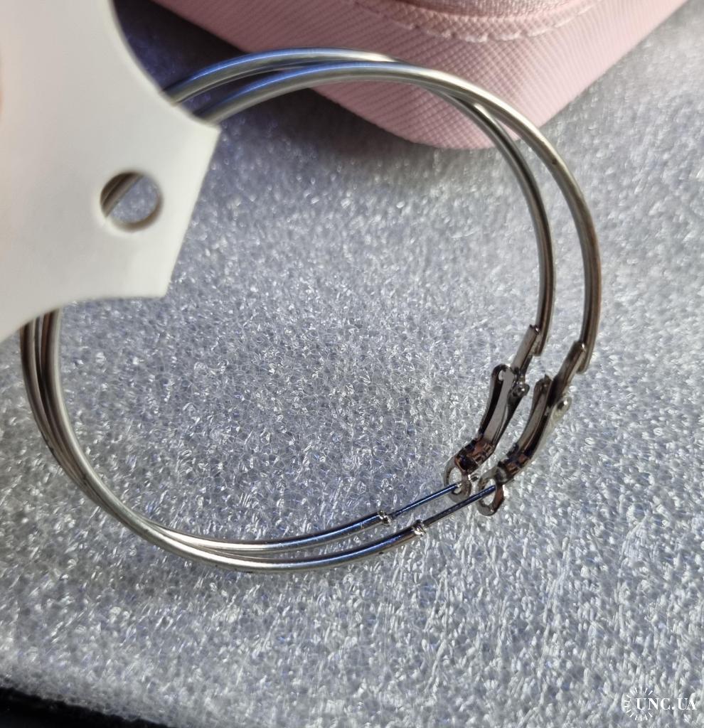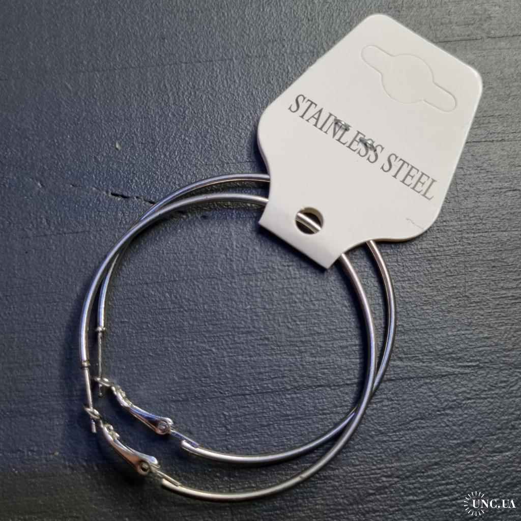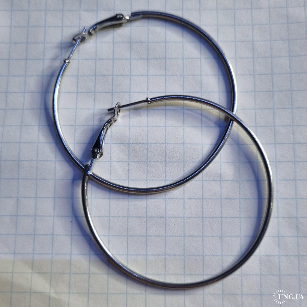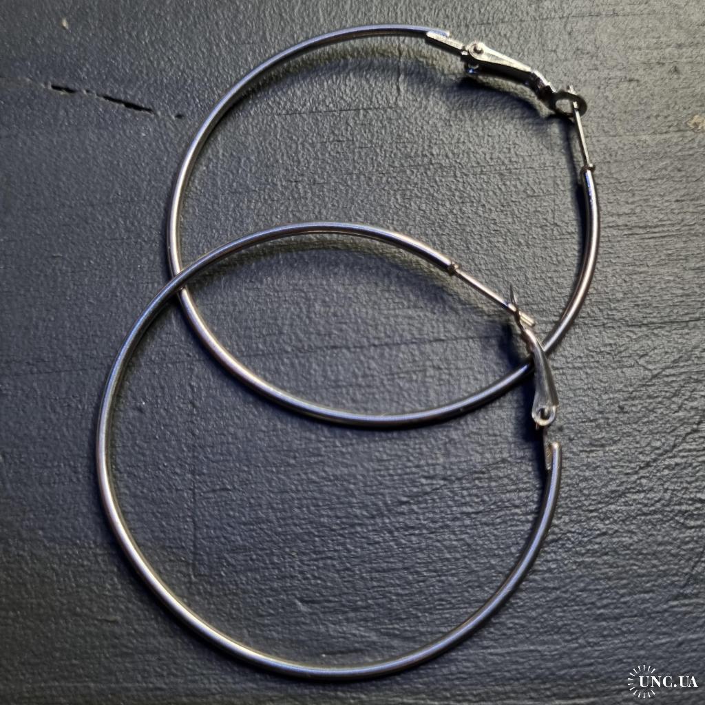 - Класичні сережки-кільця з нержавіючої сталі. Діаметр 4,8 см, зручна застібка. Є легкі потертості, але загалом виглядають акуратно.