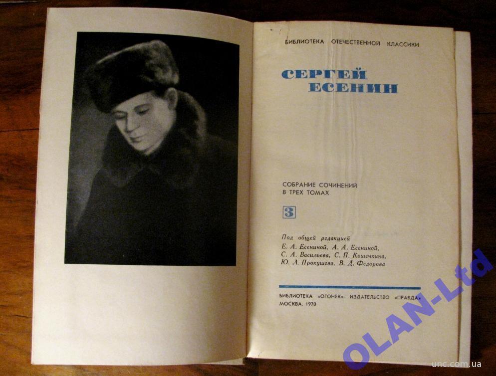 Сергей  Есенин – это  поэт  с величайшим  обдарованием  и   с   трагической   судьбой.В 30-летнем  возрасте он был по- садистски  убит  сотрудниками  ОГПУ с последующей  инсценировкой  « самоубийства » . На  1970 год (момент  выхода в свет данного  трехтомника  ) –  данное   собрание  сочинений  С.Есенина  являлось  наиболее   полным   изданием  произведений  величайшего  поэта, преждевременно  погибшего   от рук  сотрудников ОГПУ.