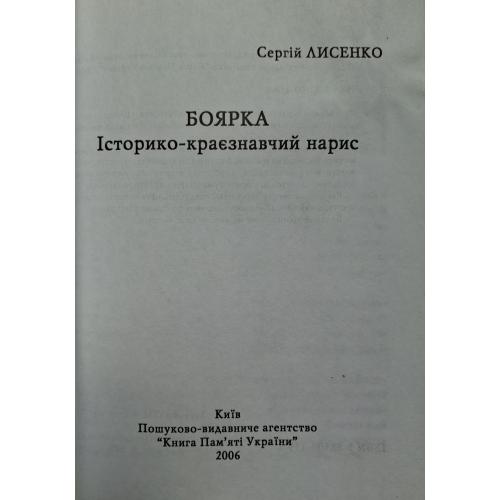 Сергій Миколайович Лисенко, знаний український історик, член Київської обласної організації Національної спілки краєзнавців України, боярський краєзнавець, автор фундаментального дослідження історії Боярки від найдавніших часів до сьогодення, розробник герба та хоругви міста Боярка, автор пішого екскурсійного маршруту «Невідома Боярка».