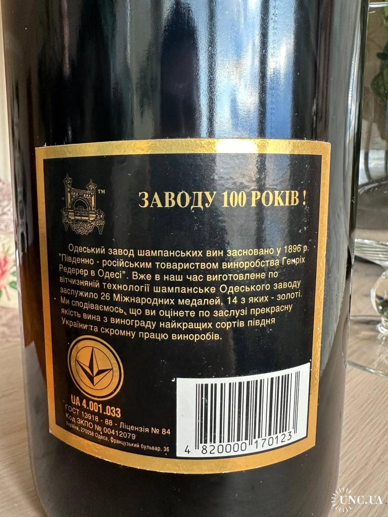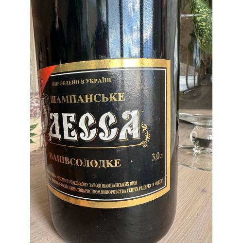 Шампанське напівсолодке 3л, колекційна обмежена серія, виготовлено до 100 річчя Одеського заводу шампанських вин у 1996 році, стан пляшки без дефектів.