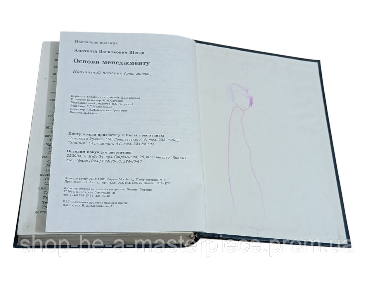 Шегда А.В. Основы менеджмента: Учебное пособие 1995 КОО, 1995г. 512 стр. Общество Знания Твердый переплет. Состояние хорошее. Все страницы цели. Обложка целая. На внутренней стороне передней и задней обложки есть следы фломастера и пара рыжих пятен. На фото видноВідповіді продавця на ваші питання