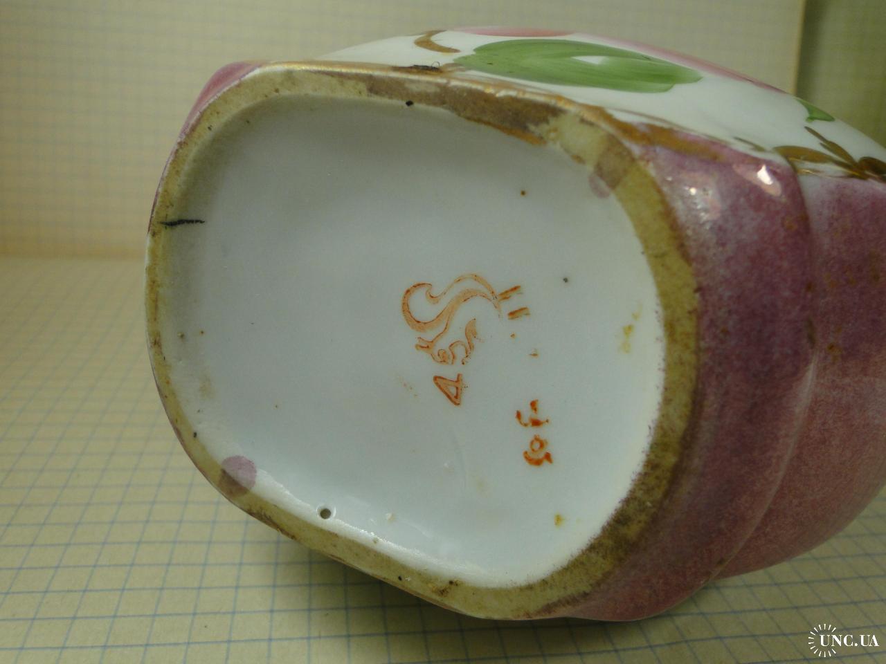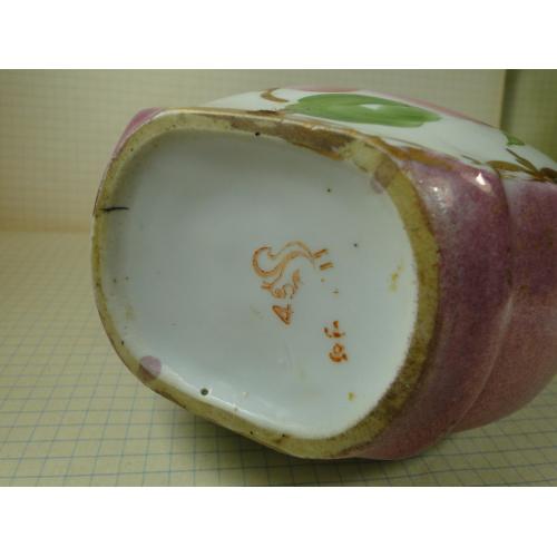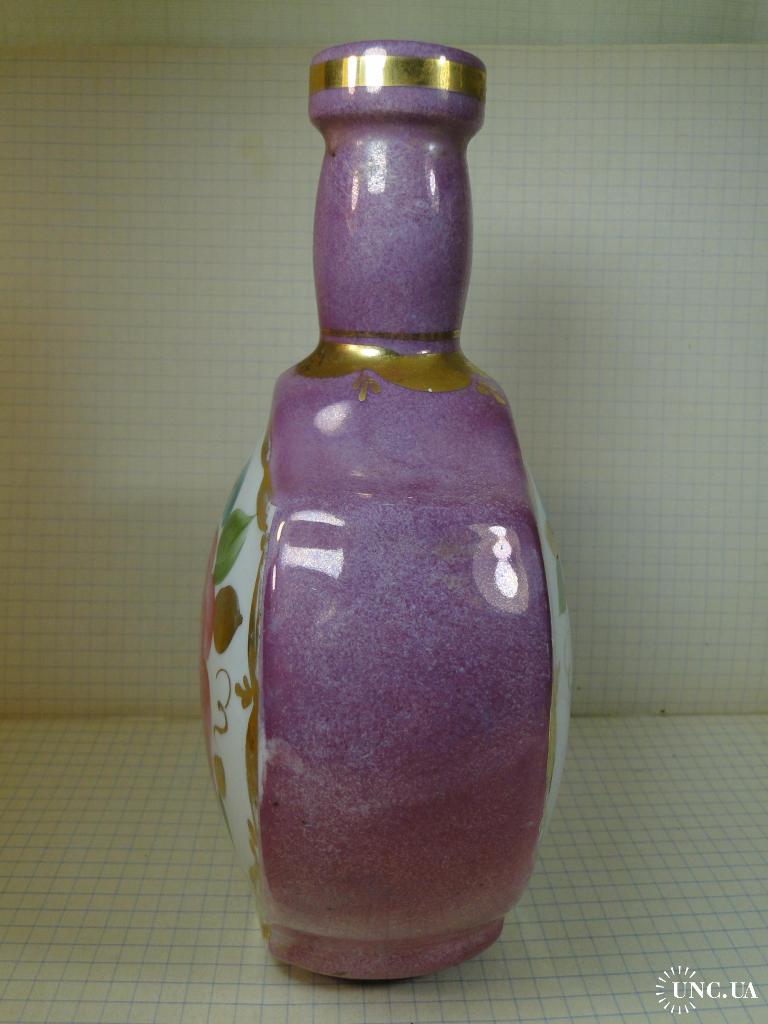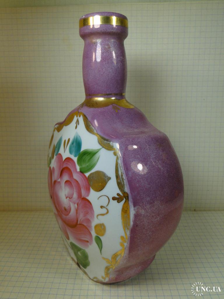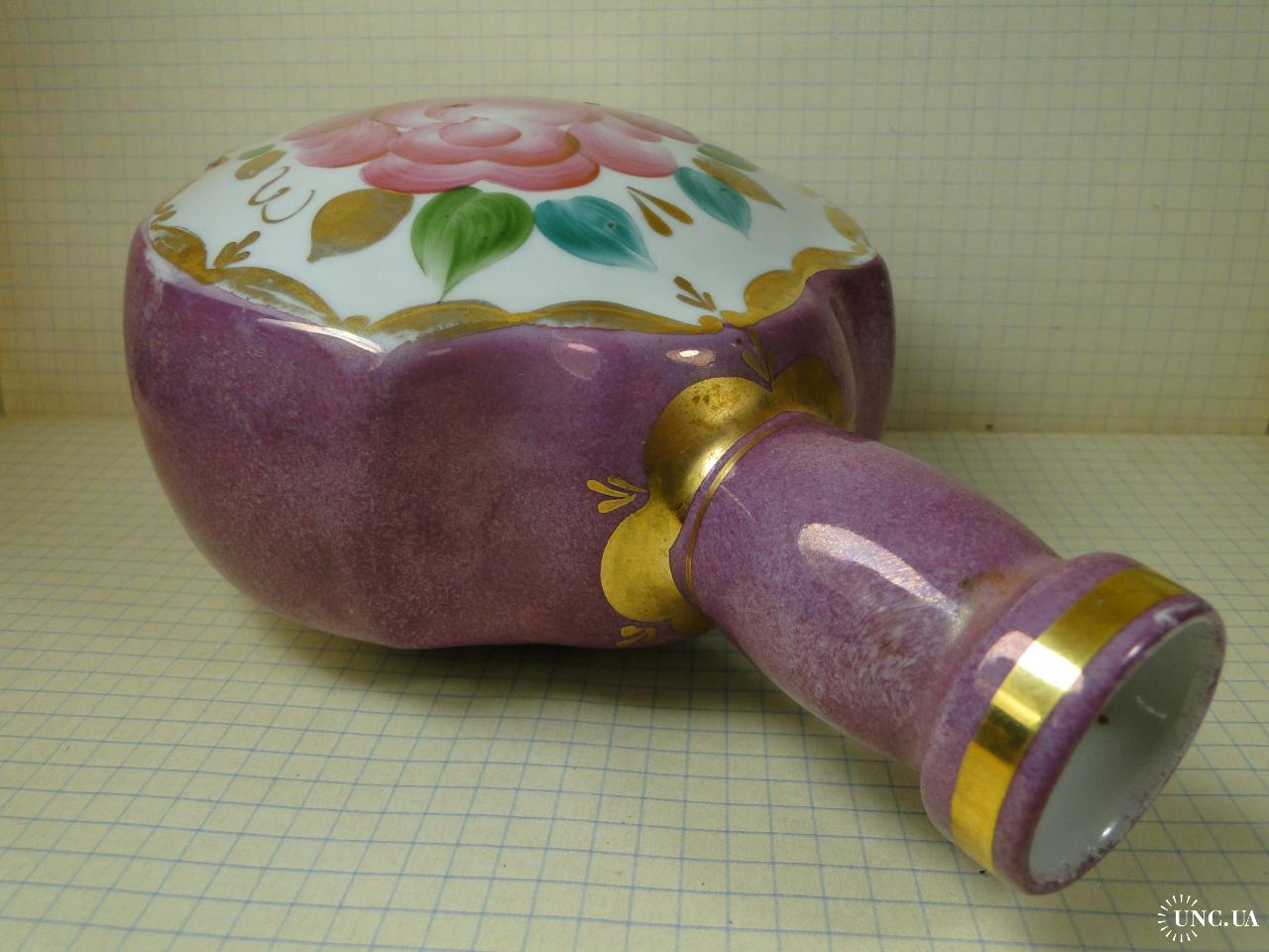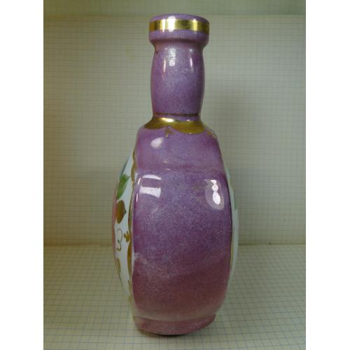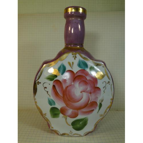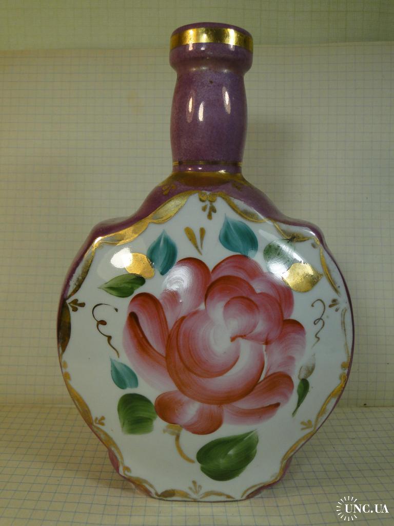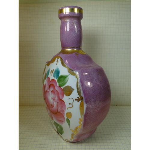 1961-1980Штоф "Роза". Сысертский фарфоровый завод. Период СССР. Материал: фарфор. Ручная роспись, позолота. Нет пробки. Высота 18 см.