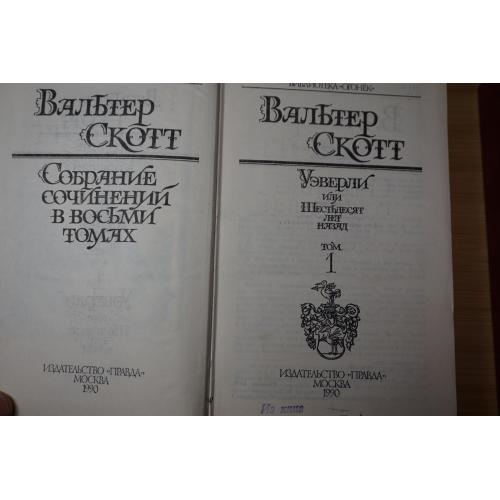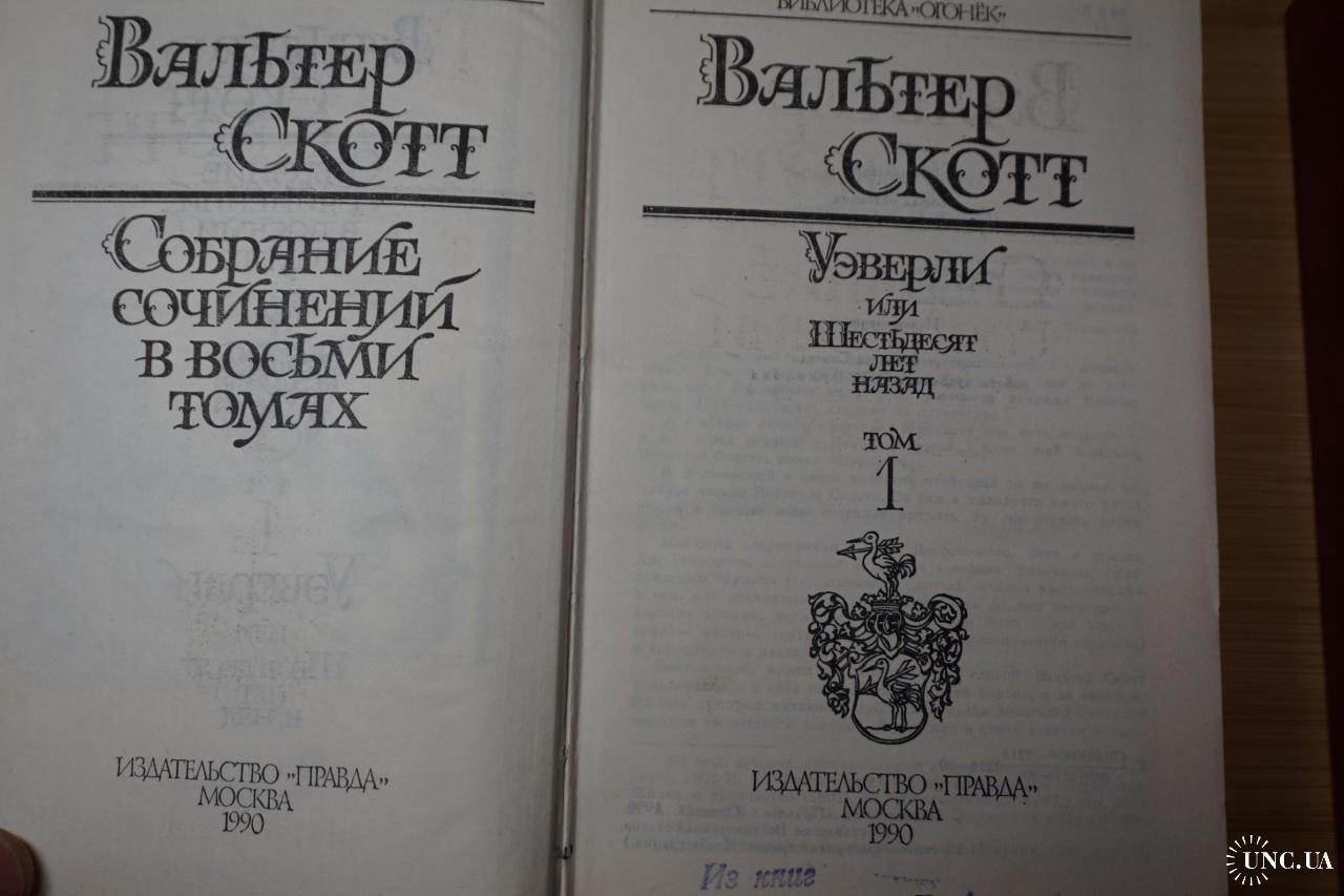 Составление и общая редакция Урнова Д.М.. Иллюстрации и портреты Вальтера Скотта работы художника Вуколова О.К. Библиотека Огонек. М. Правда. 1990г. 478+510+476+510+476+460+464+510с Палiтурка / переплет: Твердый, Обычный формат.