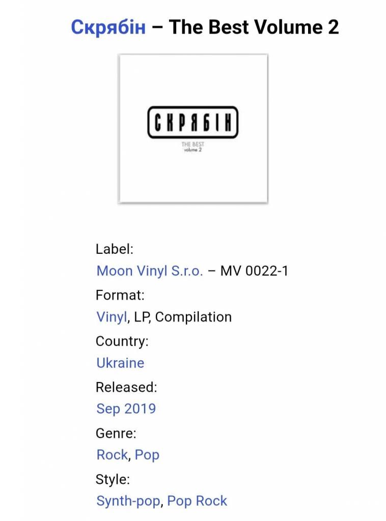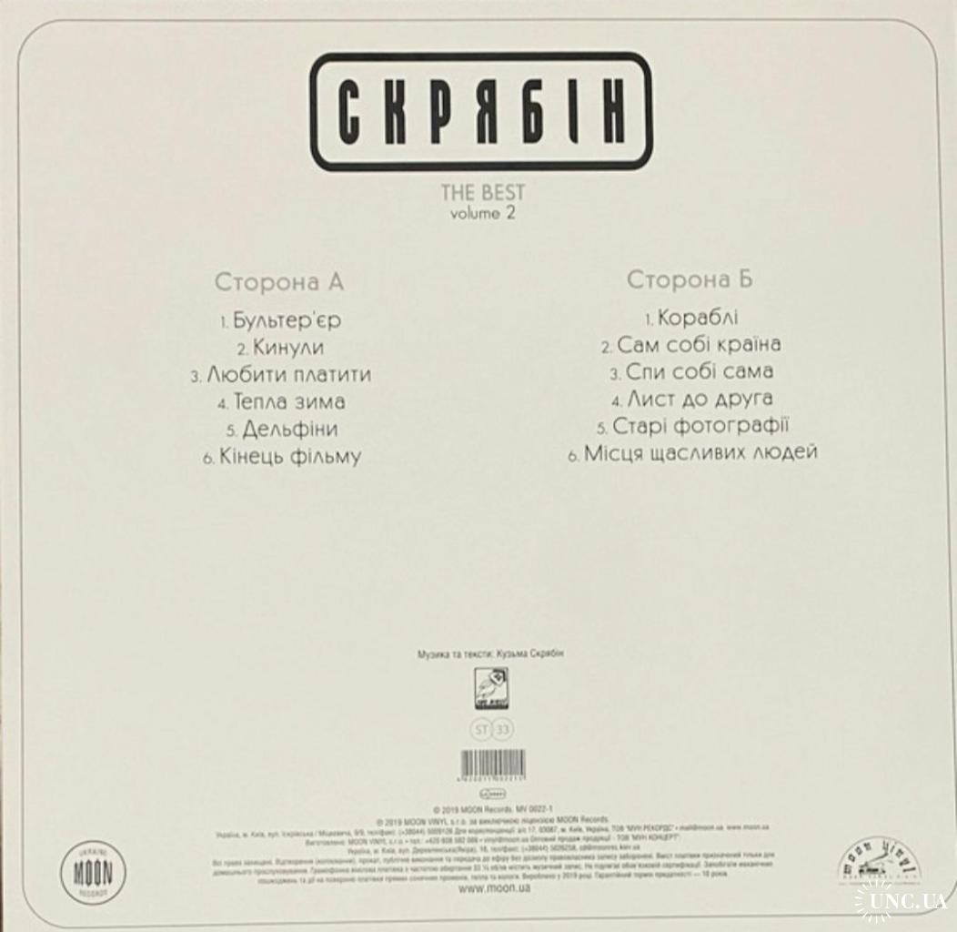 Вінілова платівка. Офіційна збірка найкращих хітів легендарного Українського сінті поп, техно, тріп-хоп, поп-рок групи Скрябін, до складу якого за весь період часу входили Андрій Кузьменко (Кузьма), Юрій Нечистяк, Олексій Зволинський, Костянтин Сухоносов, Костянтин Глітін, Вадим Колісніченко, Ольга Лізгунова, Ростислав Домішевський, Сергій Гера, Ігор Яцишин, Андрій Штурма, Олександр Скрябін, Володимир Паршенко, Олександр Мельник, Андрій Підлужний та Олена Підлужна (The Best Volume 2) 1993-2014. Випуск фірми (Moon Vinyl S.r.o.) Ukraine, 2019-ий рік. Видання нове, запаковане. Категорія S/S. Відправка по Україні службами доставки: Нова Пошта, Укр Пошта, Делівері. Також відправляємо посилки за кордон по цілому світу.
