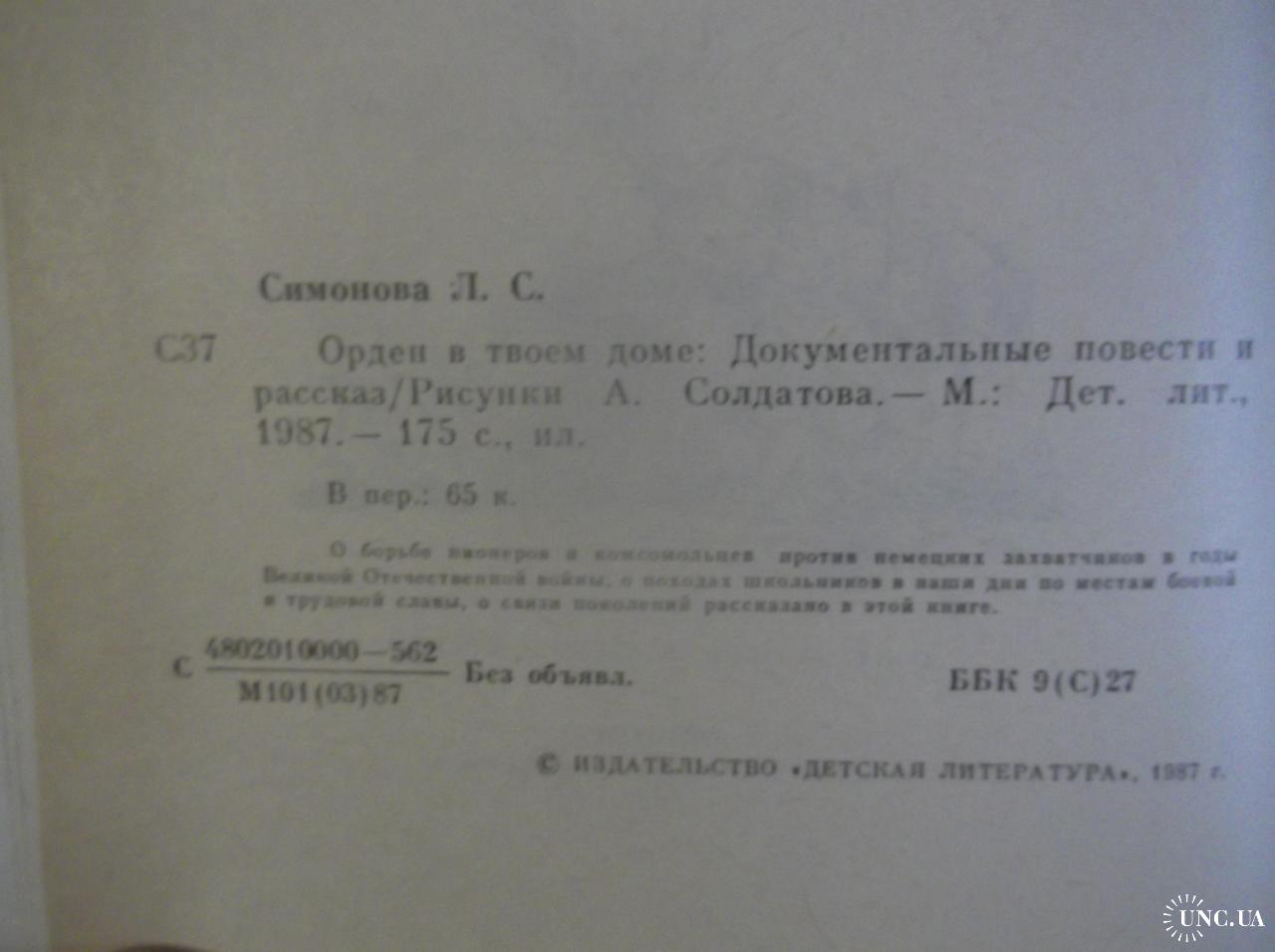 Смирнова. Орден в твоем доме. Рис. Солдатова. Документальные повести и рассказы. Издательство: Детская литература. 1987 год.