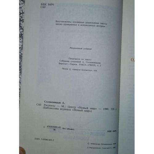 В книгу Александра Солженицына вошли рассказы, созданные в пятидесятые и шестидесятые годы, и лекция, прочитанная при получении Нобелевской премии по литературе. В сборник вошли рассказы: Один день Ивана Денисовича Матрехин двор, Крохотки, Правая кисть, Случай на станции Кочетовка, Для пользы дела, Захар-Калита, Как жаль, Пасхальный крестный ход.