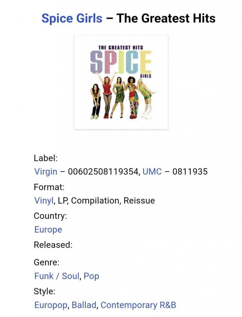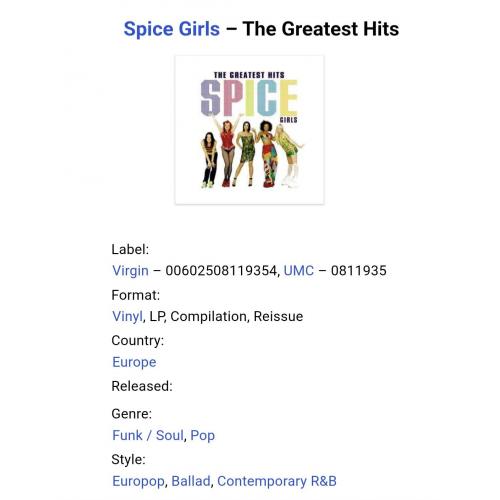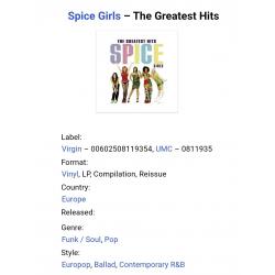 Вінілова платівка. Єдина, в дискографії, офіційна збірка найкращих хітів, Британської жіночої, поп-групи стилю денс поп, тін поп, європоп, Spice Girls, учасницями якої за весь цей період були Вікторія Бекхем, Емма Бантон, Джері Галлівер та Мелані Сі (The Greatest Hits) 1996-2000. Випуск фірми (Virgin / UMC) Europe, 2019-ий рік. Видання нове, запаковане. Категорія S/S. Відправка по Україні службами доставки: Нова Пошта, Укр Пошта, Делівері. Також відправляємо посилки за кордон по цілому світу.