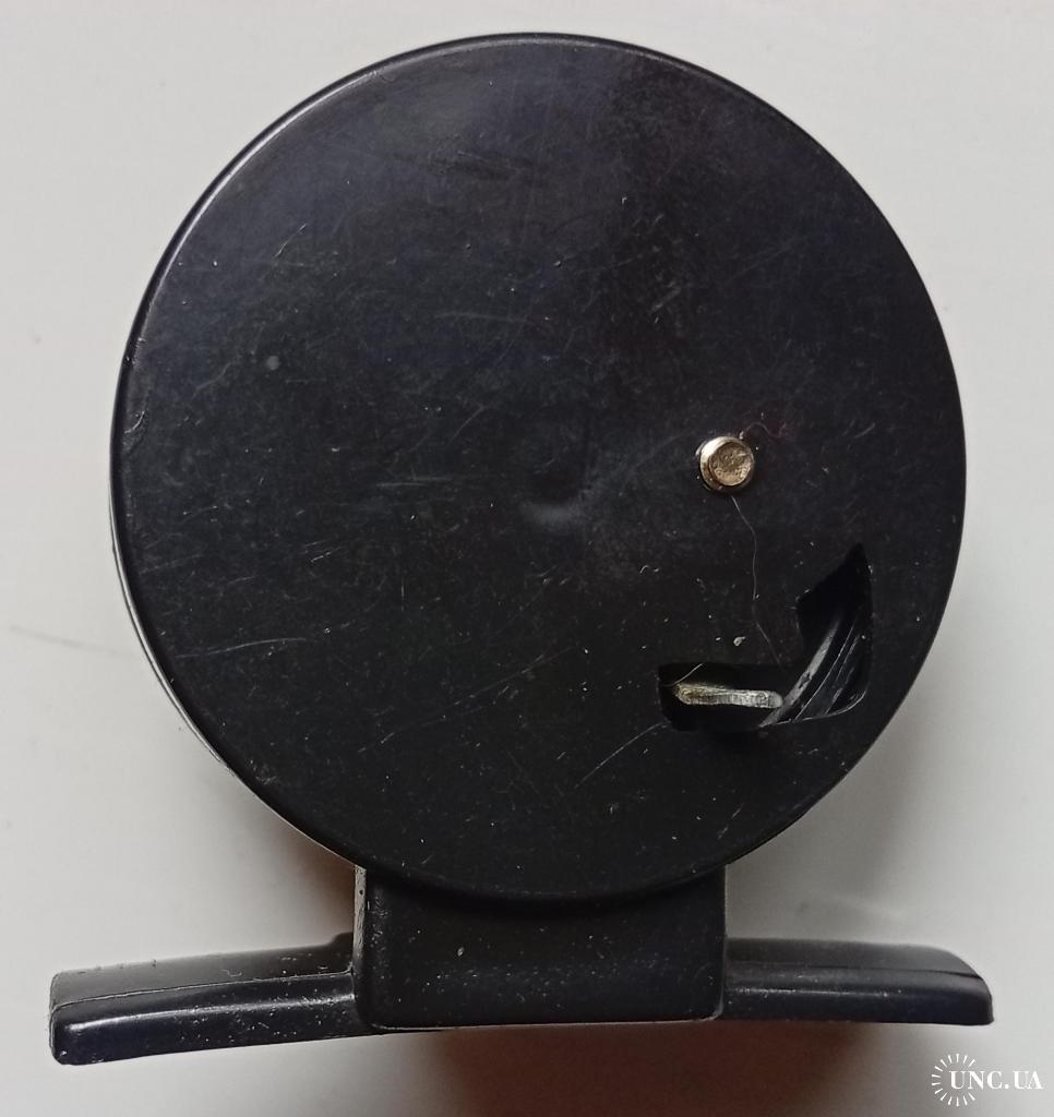 Спиннинговая катушка черная, диаметр 45 мм