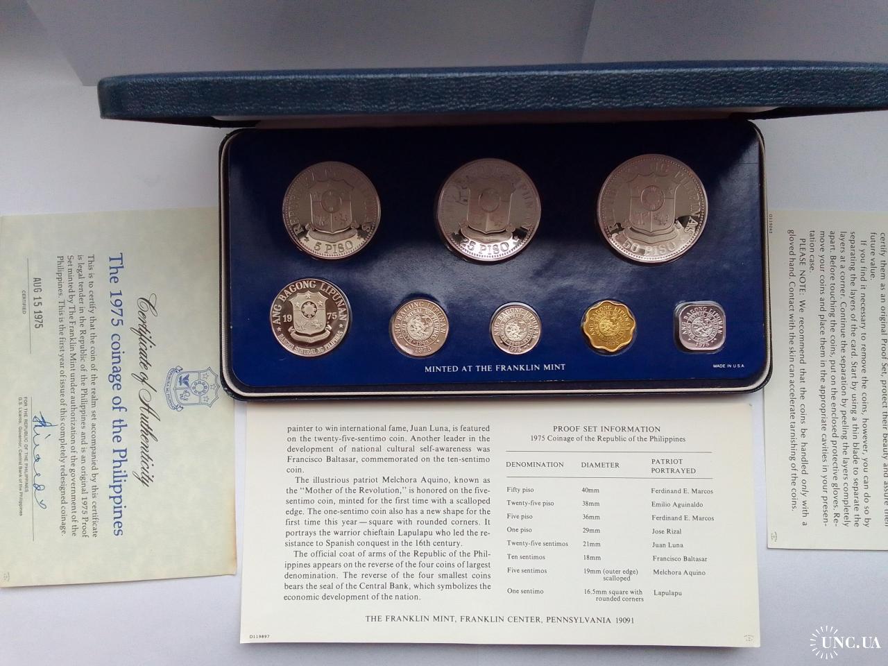 ОригіналСрібло Набір монет Філіппіни 1975 року, пруф,