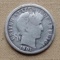 США 1 дайм, 1901 г, "O" - Новый Орлеан, серебро