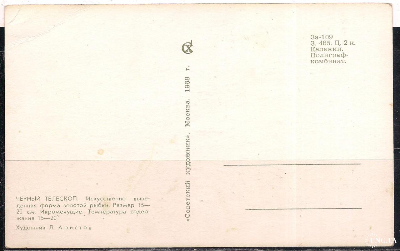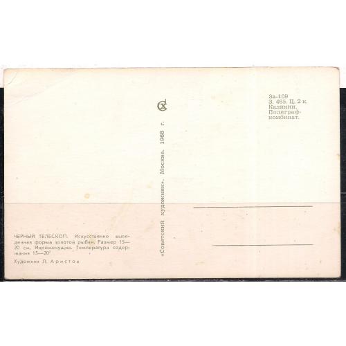 Фаунапочтовая карточка без марки, 1968 г., почтовая карточка, фауна, рыбки, Черный Телескоп, икромечущая. искусственно выведеная, стоимостью 15 грн.