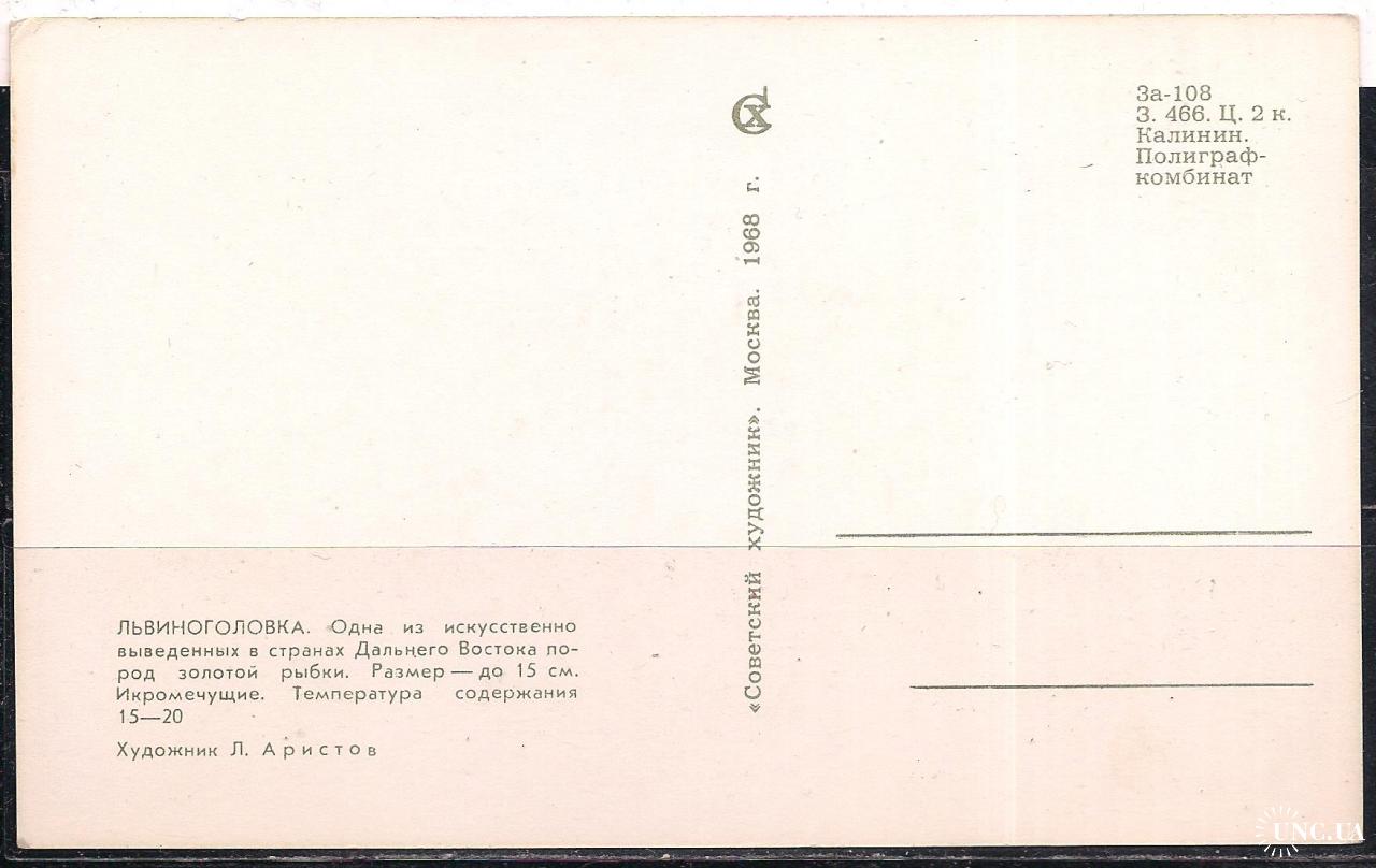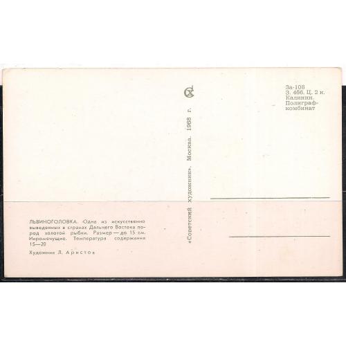 Фаунапочтовая карточка без марки, 1968 г., почтовая карточка, фауна, рыбки, Львиноголовка, икромечущая. Искусственно выведенные в странах Дальнего Востока, стоимостью 15 грн.
