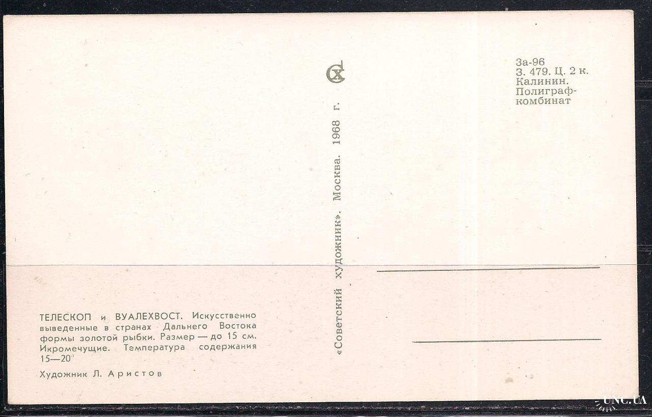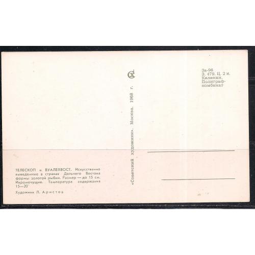 Фаунапочтовая карточка без марки, 1968 г., почтовая карточка, фауна, рыбки, Телескоп и Вуалихвост, икромечущая. Искусственно выведенные в странах Дальнего Востока, стоимостью 15 грн.