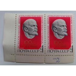 Марки на маркахСССР 1970 Всесоюзная филателистическая выставка, Ленин, угловая сцепка, MNH