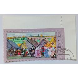 МистецтвоСССР 1978 Кустодиев, праздник в деревне, угловая с полями, гашеная(I)