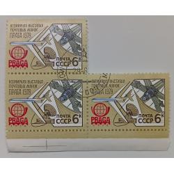 Марки на маркахСССР 1978 Всемирная выставка почтовых марок Прага, треугольная сцепка, гашеная
