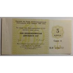 наявнийСССР. Банк внешнеэкономической деятельности. Внешэкономбанк. 5 копеек. 1989. Якорь. Торгмотранс.