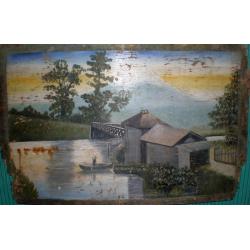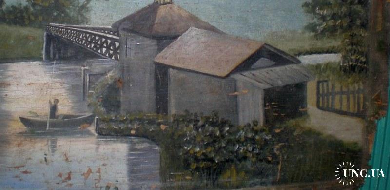 1941-1960Стара картина Українське наївне мистецтво. Олія на фанері, 48 х 73см. Оригінал.