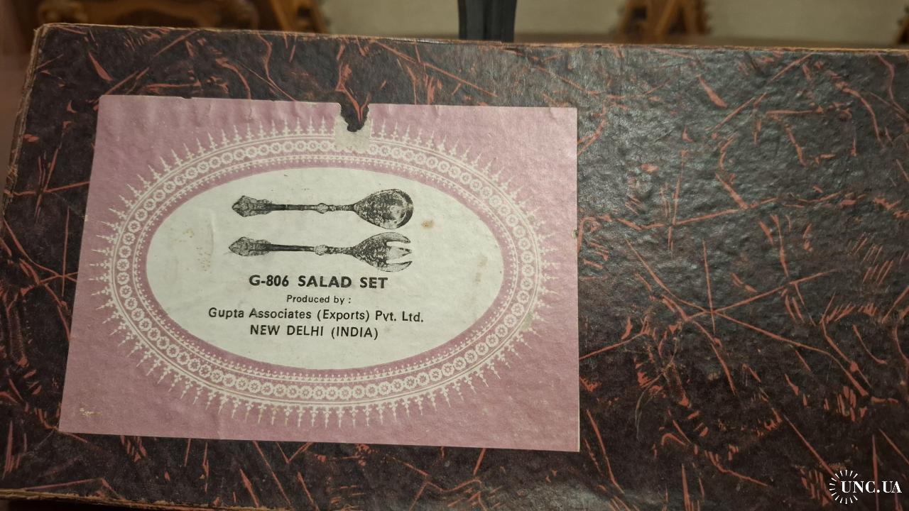1961-1980Старинный Сервировочный Набор Индия Патина Чеканка Новый Родная Коробка Длина 26.5 см Отличное состояние Без повреждений Необычный, очень красивый