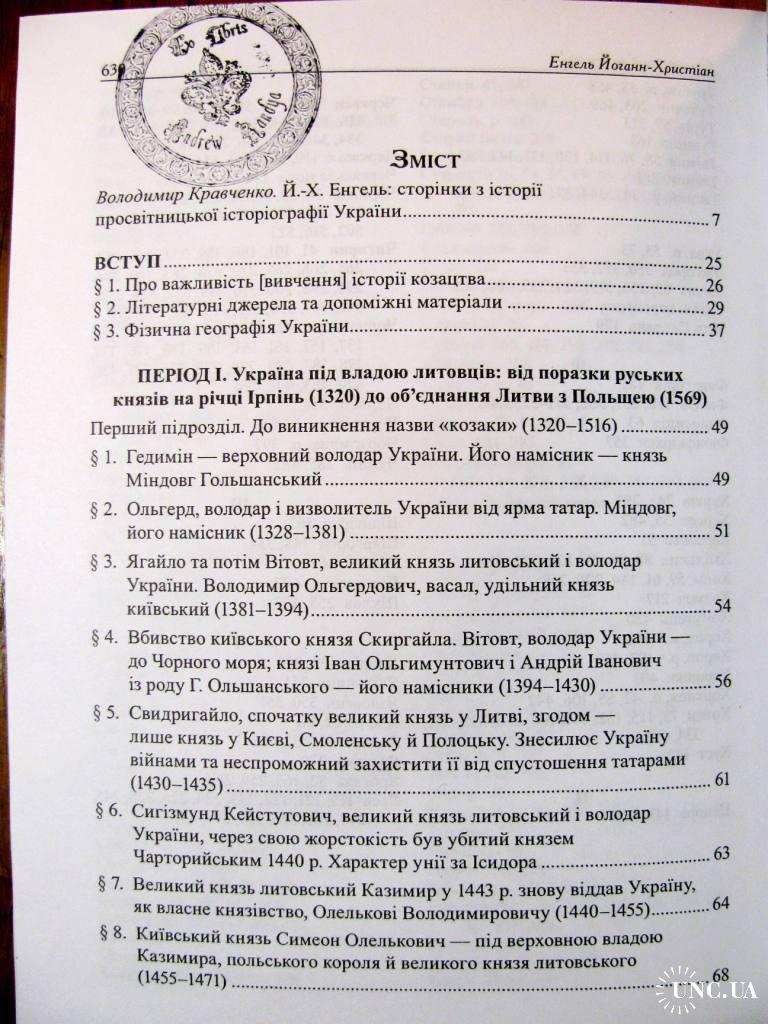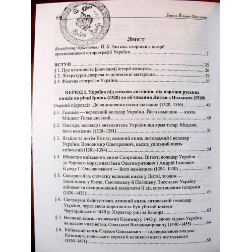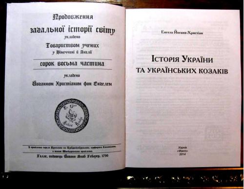 Перед Вами- перше видання українською мовою фундаментальної праці «Історія України та українських козаків» визначного німецько-австрійського історика доби Просвітництва Йоганна-Христіана фон Енґеля (нім.Johann Christian von Engel;17 жовтня1770 р., Левоча —20 березня1814 р.,Відень). Йоганн Енґель в свій час побував в Україні. Зокрема, він відвідав Збараж, Зборів, Теребовлю.