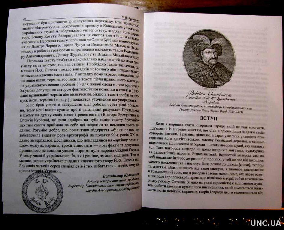 Перше видання українською мовою праці Енґеля «Історія України та українських козаків» відкриває вступна стаття «Й.-Х. Енґель: сторінки з історії просвітницької історіографії України». Автор даної ґрунтовної передмови – доктор історичних наук Володимир Кравченко, директор Канадського інституту українських студій Альбертського університету. Професор Кравченко знайомить читачів із постаттю Енґеля та історичним контекстом, на тлі якого виникло дослідження, його місцем серед українознавчих студій XVIII століття.