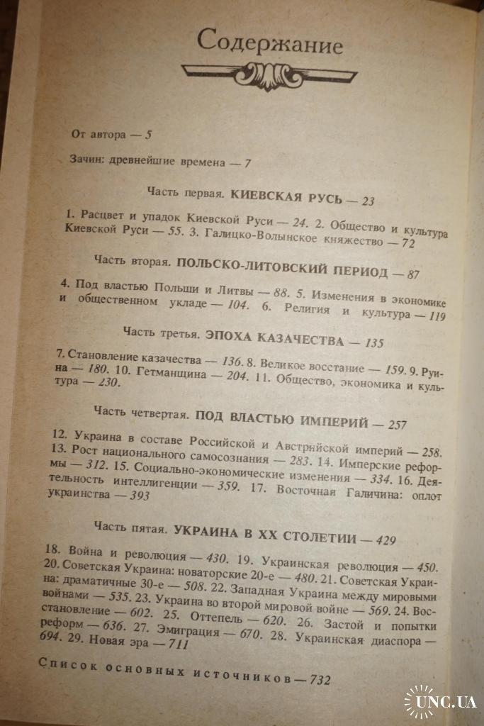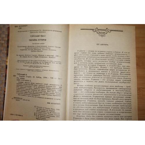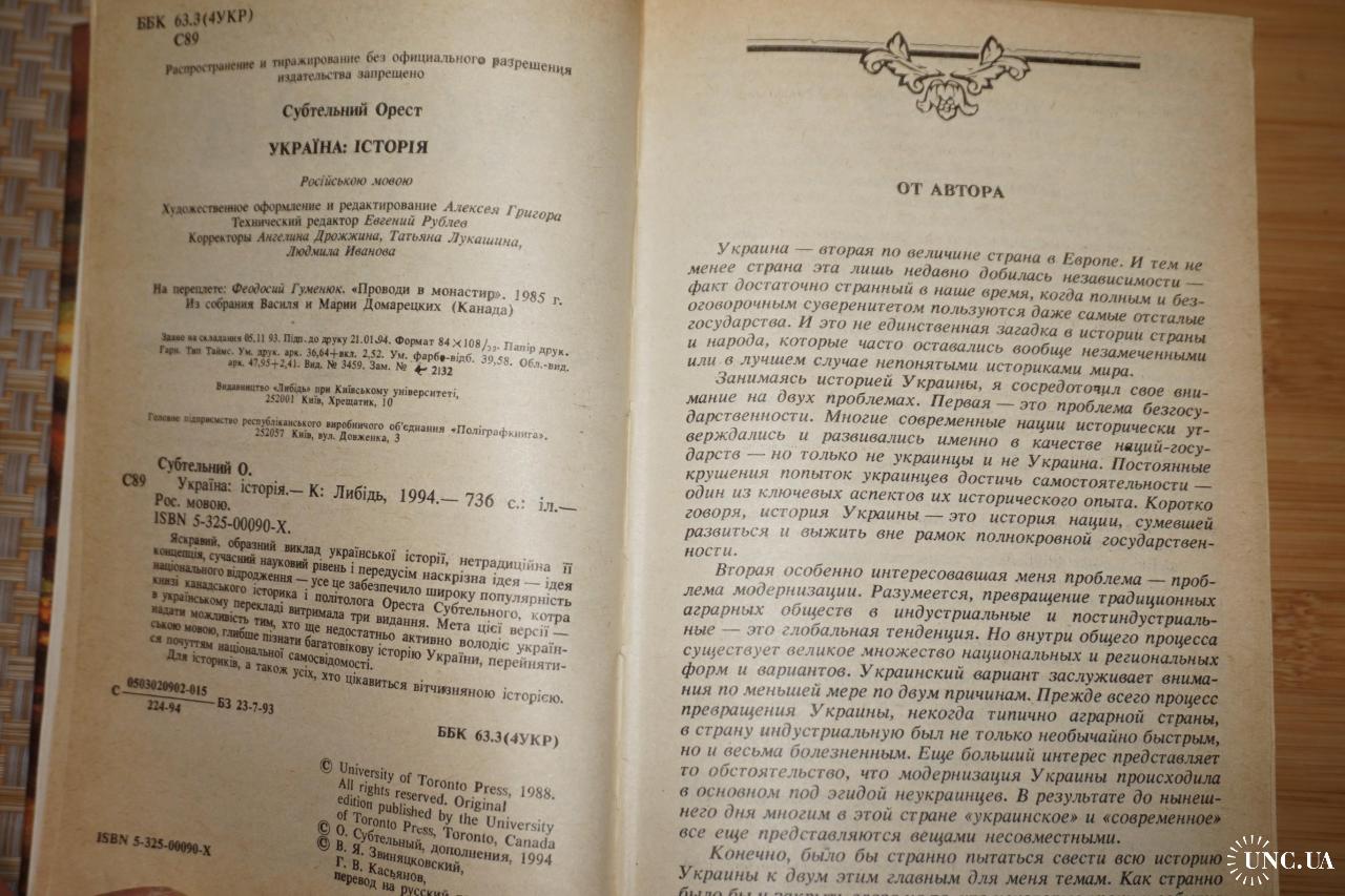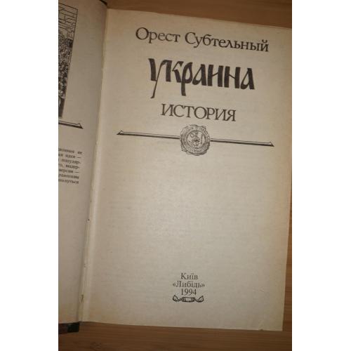Перевод с английского издания Orest Subtelny. Ukraine: A History. University of Toronto Press, 1988. К.: Либiдь 1994г. 736 с. Палiтурка / переплет: Твердый, обычный формат.
