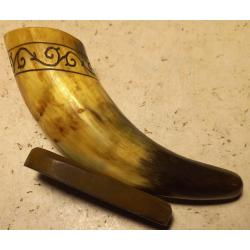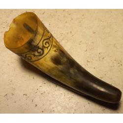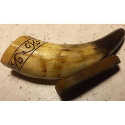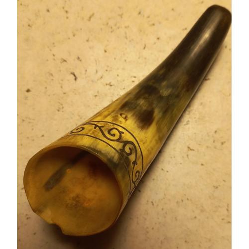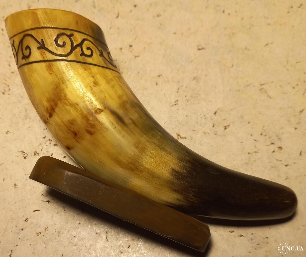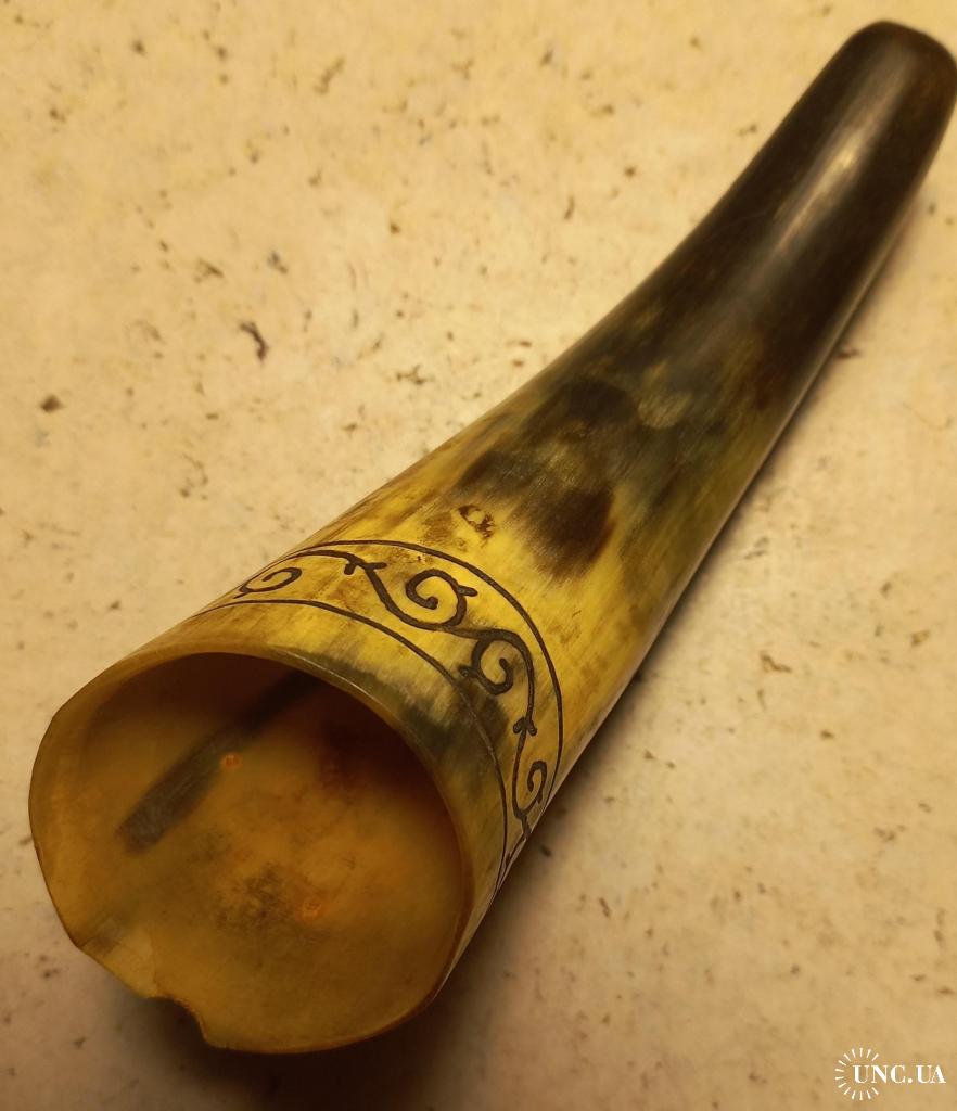 1961-1980Способ орнамента – ручная резьба по окружности рога. На широкой стороне рога имеется щербинка. Возможно от сигареты, или по другой причине. Установить причину не представляется возможным из-за длительности прошедшего времени. Прочих дефектов нет. Состояние хорошее.