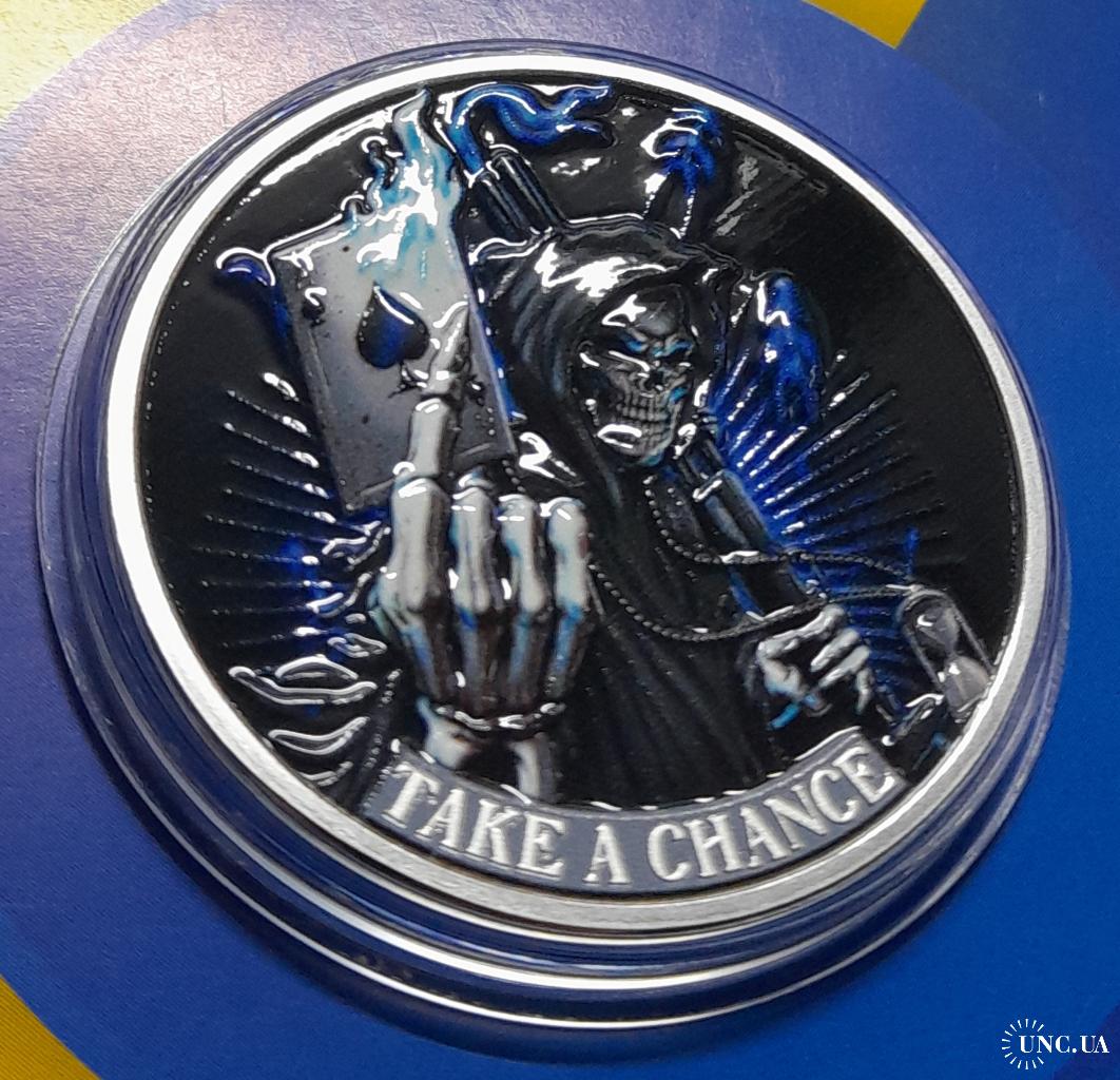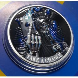 Сувенірна монета: " Смерть і Покер ". Монета в капсулі. Діаметр 40 мм. Стан монети на фото.
