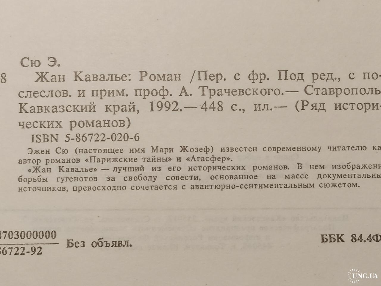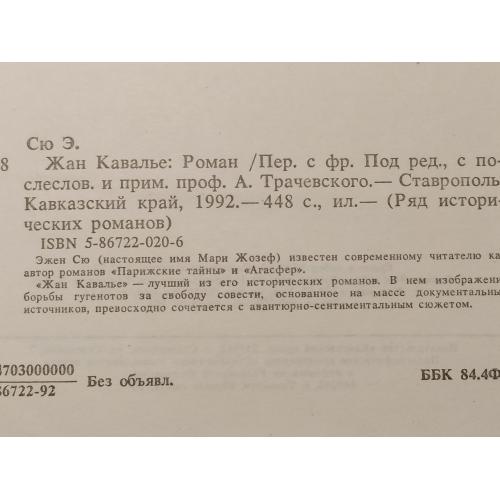 Сю Эжен. Жан Кавалье. Серия Ряд исторических романов. Издательство: Кавказский край. 1992 год. В отличном состоянии!