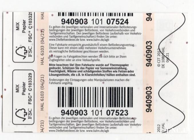 Талон / билет Билет VVS 2й класс разовый Штутгарт 04.12.2024