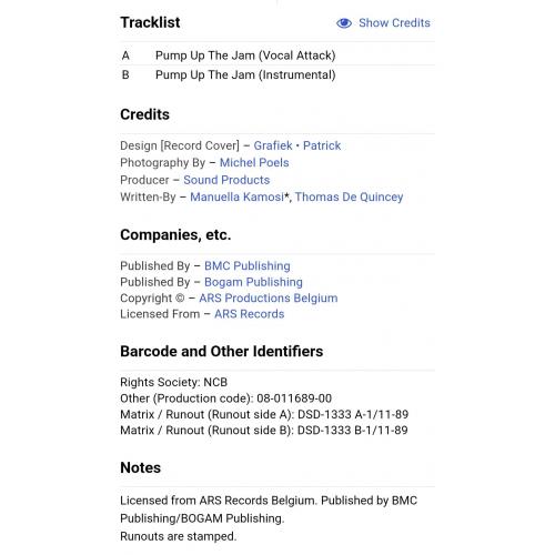 Вінілова платівка. Перший, дебютний, в дискографії, студійний міні сингл (ЕР 7), Бельгійської техно денс, євро хаус групи Technotronic, до складу якої, на той час, входили Джо Богарт, Мануела Камозі, більше відома під сценічним ім'ям Ya Kid Ki та MC Eric (Pump Up The Jam) 1989. Випуск фірми (Mega Records) Scandinavia, 1989-ий рік. Оригінальне, першопресове, Скандинавське видання. Стан платівки EX+. Стан конверту EX+. Відправка по Україні службами доставки: Нова Пошта, Укр Пошта, Делівері. Також відправляємо посилки за кордон по цілому світу.