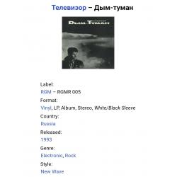 Вінілова платівка. П'ятий, в дискографії, студійний альбом, російської (радянської) сінті-рок, пост панк, готік рок групи нової хвилі, Телевізор, до складу якої, на той час, входили Михайло Борзикін, Костянтин Шумайлов, Сергій Богданов та Ігор Федоров (Дым-Туман) 1992. Випуск фірми (RGM) Russia, 1993-ій рік. Оригінальне першопресове видання (1st Press). Лімітований тираж (Limited Edition). Рідкісне (Rare). Стан платівки ЕХ+/EX. Стан конверту ЕХ+. Відправка по Україні службами доставки: Нова Пошта, Укр Пошта, Делівері. Також відправляємо посилки за кордон по цілому світу.