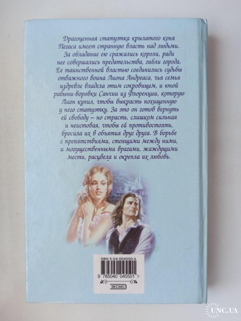 Драгоценная статуэтка крылатого коня Пегаса имеет странную власть над людьми. За обладание ею сражались короли, ради нее совершались предательства, гибли города. Ее таинственной властью соединились судьбы отважного воина Лиона Андреаса, чья семья издревле владела этим сокровищем, и юной рабыни - воровки Санчии из Флоренции, которую Лион купил, чтобы выкрасть похищенную у него статуэтку. За это он готов вернуть ей свободу, - но страсть, слишком сильная и неистовая, чтобы ей противостоять, бросила их в объятия друг друга. В борьбе с препятствиями, стоящими между ними, и могущественными врагами, жаждущими мести, расцвела и окрепла их любовь.