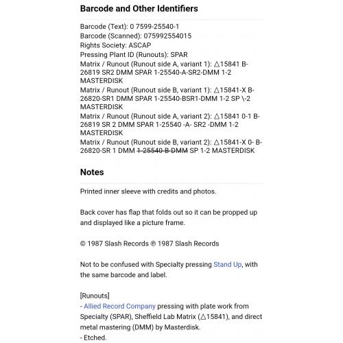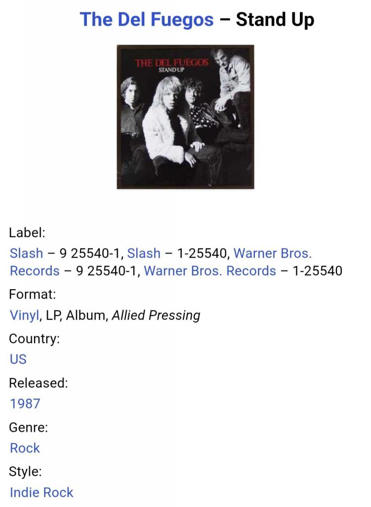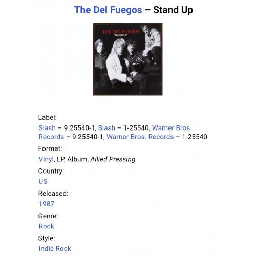 Вінілова платівка. Третій, в дискографії, студійний альбом, Американської гараж-рок, інді-рок, хард-рок групи із Бостона The Del Fuegos, до складу якої, на той час, входили учасники Дан Занес, Варрен Занес, Том Ллойд, Стіві Моррелл, Брент Вуді Гіссман, Адам Рот, Джоє Донеллі, Сонні Колумбус та Бразер Клів (Stand Up) 1987. Випуск фірми (Slash / Warner Bros. Records) USA, 1987-ий рік. Оригінальне, першопресове, рідне, Штатовське видання. Стан платівки ЕХ+. Стан конверту EX. В комплекті внутрішня вставка. Відправка по Україні службами доставки: Нова Пошта, Укр Пошта, Делівері. Також відправляємо посилки за кордон по цілому світу.