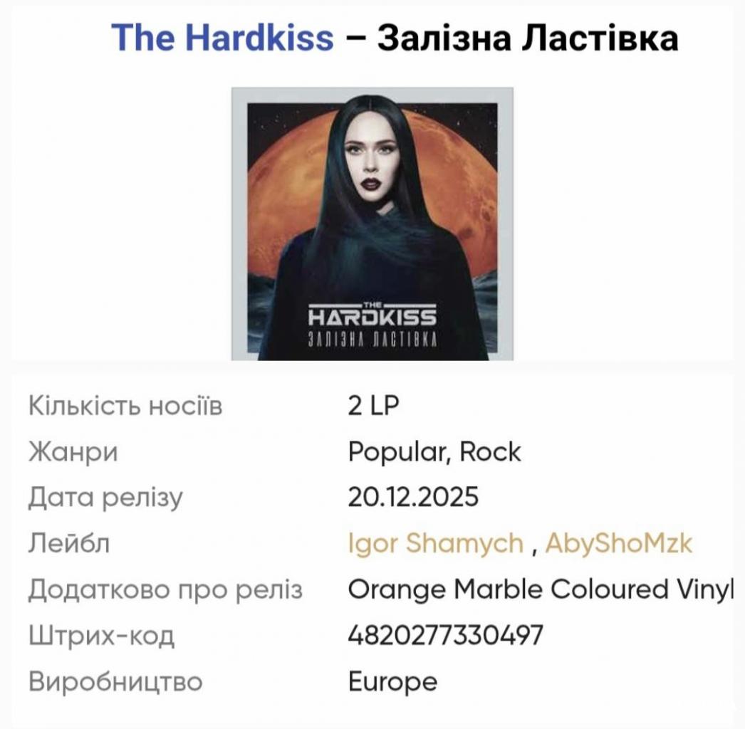 Вінілові платівки. Третій, в дискографії, студійний альбом, Української електро поп-рок, хард-рок групи із Києва, The Hardkiss, до складу якої, на той час, входили Юлія Саніна, Валерій Бебко, Клим Лисюк та Євген Кібелєв (Залізна Ластівка) 2018. Випуск фірми (Aby Sho Mzk / Igor Shamych) 2025-ий рік. Видання з двох платівок (2LP), кольорові вініли (Coloured Vinyl). Лімітований тираж (Limited Edition). Видання нове, запаковане. Категорія S/S. Відправка по Україні службами доставки: Нова Пошта, Укр Пошта, Делівері. Також відправляємо посилки за кордон по цілому світу.