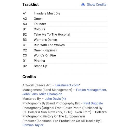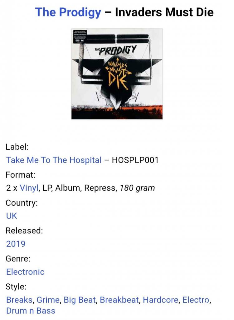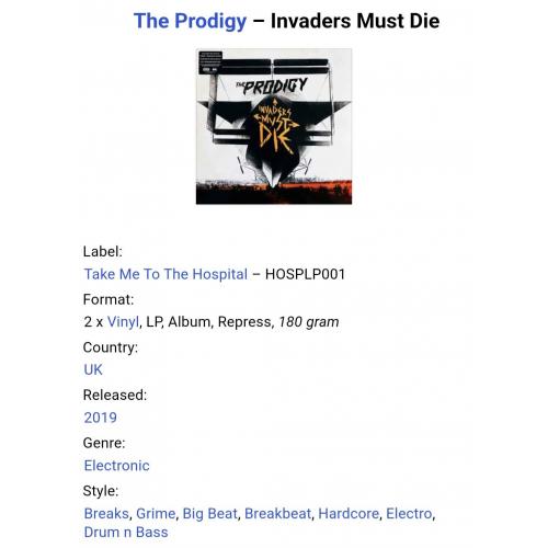 Вінілові платівки. Шостий, в дискографії, студійний альбом, Британської електро панк, хардкор, рейв групи The Prodigy, до складу якої, на той час, входили учасники Ліам Гаулетт, Максим Реаліті, Кіт Флінт, Роб Холлідей та Лео Кребтрі (Invaders Must Die) 2009. Випуск фірми (Take Me To The Hospital) UK, 2019-ий рік. Видання з двох платівок (2LP). Нове, запаковане. Категорія S/S. Відправка по Україні службами доставки: Нова Пошта, Укр Пошта, Делівері. Також відправляємо посилки за кордон по цілому світу.