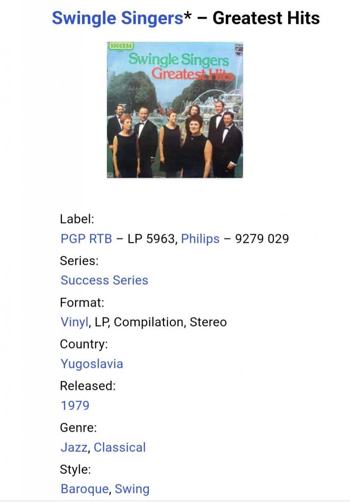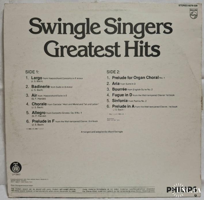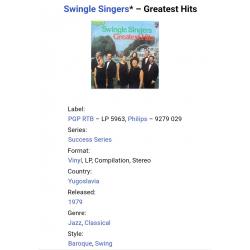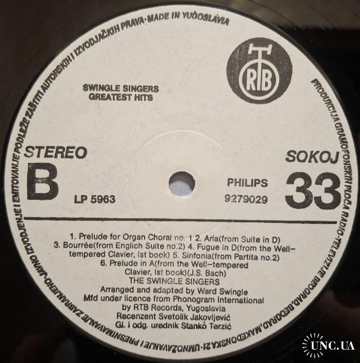 Вінілова платівка. Офіційна збірка найкращих хітів Французького вокального а капелла, джаз ансамблю The Swingle Singers, до складу якого на той період часу входили Еліс Хералд, Анні Гермеінд, Крістіна Легранд, Клауд Гермеін, Клаудіна Мун'єр, Хелен Девос, Жан Клод Бріодін, Джоанна Ретбун, Ніколя Дарді та Вард Свінгл (Greatest Hits) 1962-72. Випуск фірми (PGP RTB / Philips) Yugoslavia, 1979-ий рік. Стан платівки EX-/VG+. Стан конверту ЕХ. Відправка по Україні службами доставки: Нова Пошта, Укр Пошта, Делівері. Також відправляємо посилки за кордон по цілому світу.