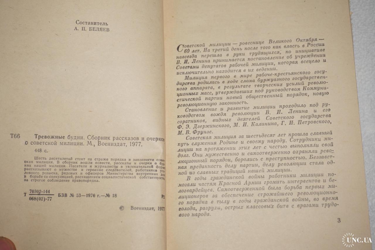 Повести, рассказы и очерки о милиции./ Сост. А. П. Беляев. М. Воениздат. 1977г. 448с. Палiтурка / переплет: твердый тканевый, обычный формат.