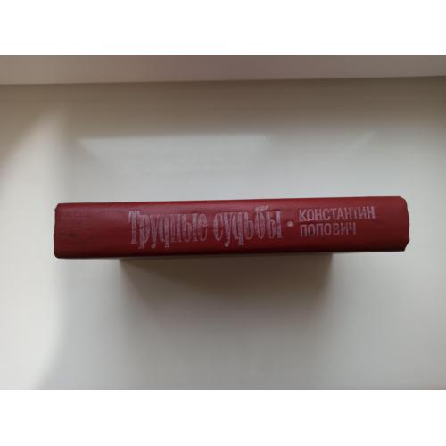Новый роман Константина Поповича хронологически продолжает развитие событий, воссозданных в его предыдущих книгах "Зарево над Днестром" и "Тревожный рассвет", отразивших социальные сдвиги и потрясения в Бессарабии и Северной Буковине в период февральской буржуазной революции, Великого Октября и Хотинского восстания. Роман "Трудные судьбы" ведет свое летосчисление с рубежей исторического лихолетья между Хотинским и Татарбунарским восстаниями, а его герои, приняв эстафету от своих предшественников, продолжают их дела и борьбу на протяжении полутора десятка лет периода румынского оккупационного режима. Многоплановой сюжетно-композиционной архитектонике романа соответствует большое число персонажей, составляющих движущую пружину происходящих событий. Это рабочие и крестьяне, интеллигенты всех уровней, военные, правительственные и королевские круги буржуазной Румынии, представители большинства национальностей, населявших земли, в пределах которых развиваются события. В горниле социальных процессов и столкновений, описываемых в романе, складываются характеры, решаются человеческие судьбы, определяются грани их общественного и личного бытия.