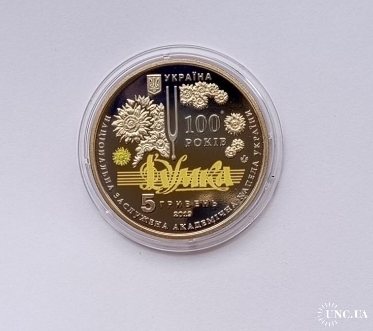 ОригіналУкраїна 5 гривень 100 років з часу утворення Національної капели України Думка 2019,банківський стан