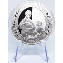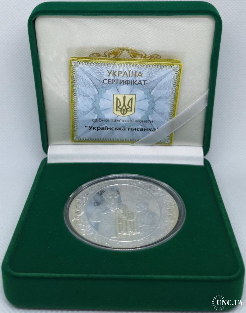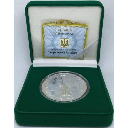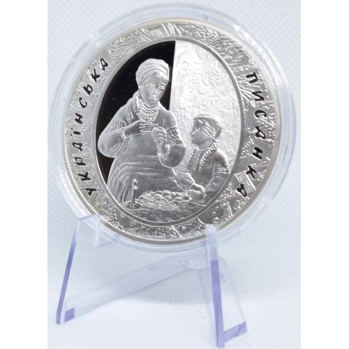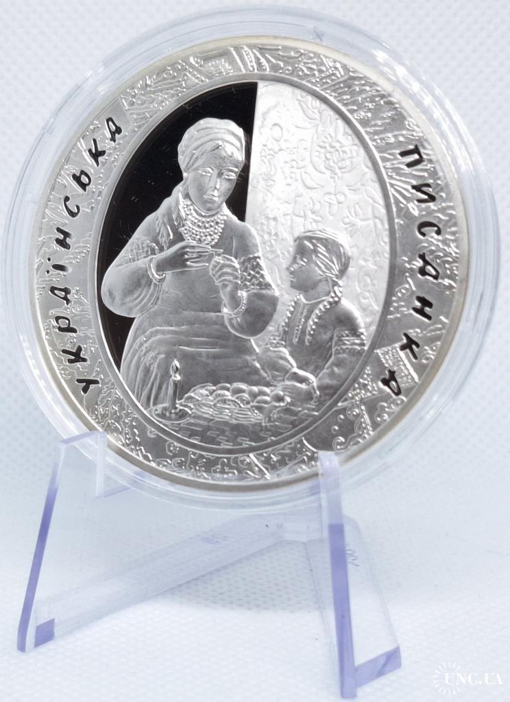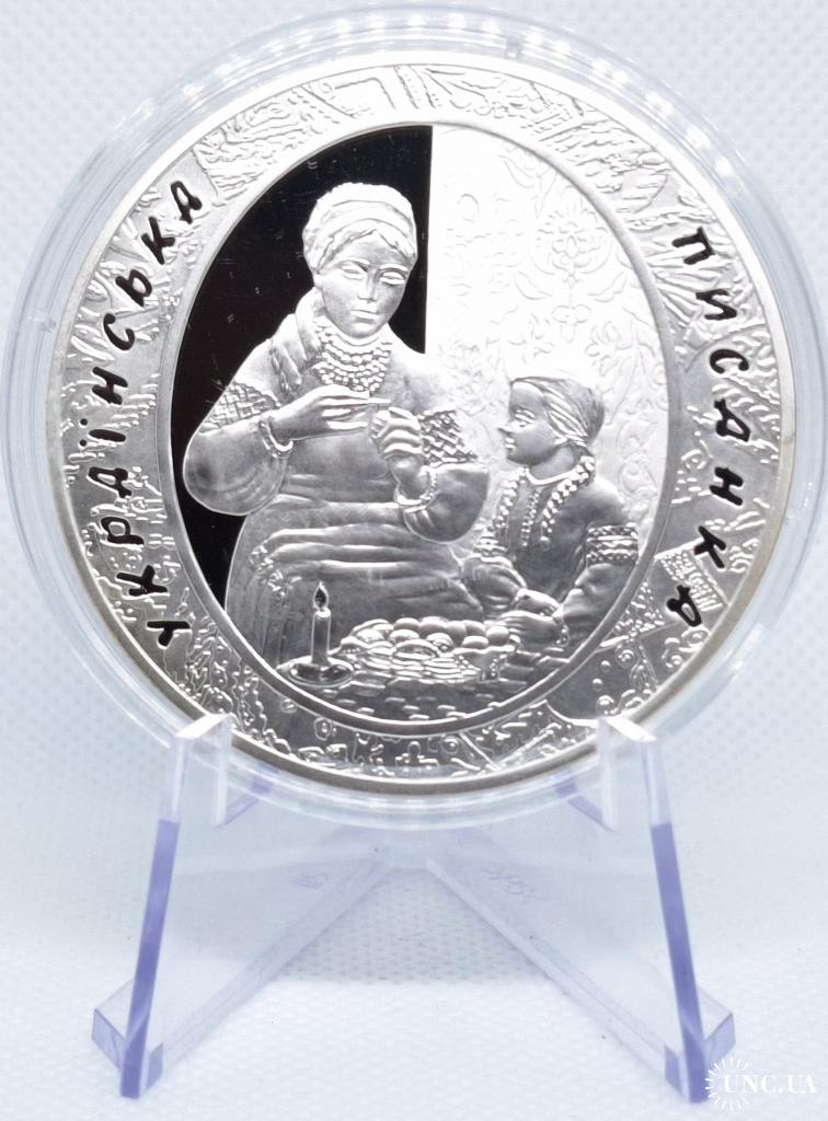 На реверсі монети - коло монети оздоблено орнаментом під писанку, контур якого утворює яйце, усередині якого розміщено композицію - жінка-писанкарка розмальовує яйце і поруч з нею сидить дівчинка. На тлі орнаментального кола розміщено напис УКРАЇНСЬКА (ліворуч) ПИСАНКА (праворуч).