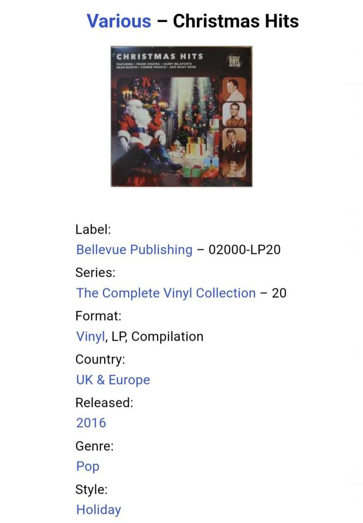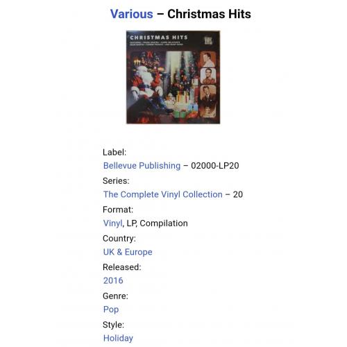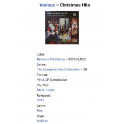 Вінілова платівка. Святкова збірка найпопулярніших Різдвяних хітів від світових музичних зірок таких як Elvis Presley, Frank Sinatra, Bing Crosby, Nat King Cole, Harry Belafonte, Paul Anka, The Beverley Sisters, Dean Martin, Eartha Kitt, Peggy Lee, Brenda Lee, Johnny Mathis, Ray Connlf And The Singers, Connie Francis, Judy Garland (Christmas Hits) 2016. Випуск фірми (Bellevue Publishing) UK & Europe, 2016-ий рік. Лімітований тираж (Limited Edition). Видання нове, запаковане. Категорія S/S. Відправка по Україні службами доставки: Нова Пошта, Укр Пошта, Делівері. Також відправляємо посилки за кордон по цілому світу.