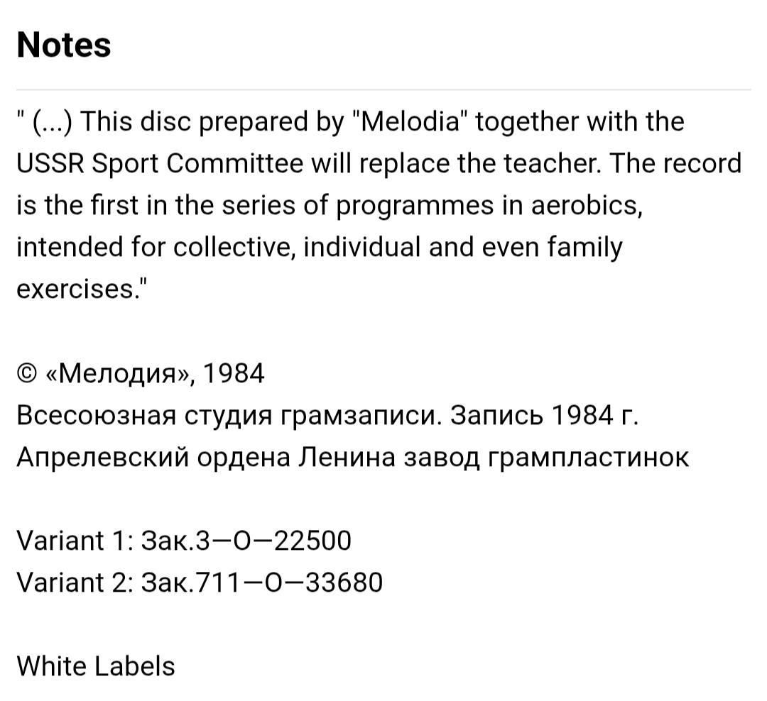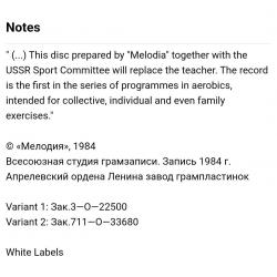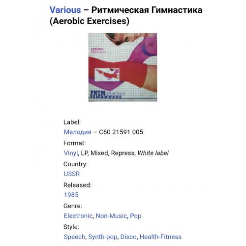 Вінілова платівка. Музика для занять ритмічною гімнастикою, у виконанні ансамблю В. Осінського, оркестру П. Овсянникова, ансамблю Радар, групи Опус. Ведуча програми О. Чиповська (Ритмическая Гимнастика) 1984. Випуск фірми (Мелодія) СРСР, Апрелєвський завод грамплатівок, 1985-ий рік. Платівка нова, неіграна, під голкою не була. Категорія М (Mint). Стан конверту NM-. В комплекті внутрішня вставка з уроками занять. Відправка по Україні службами доставки: Нова Пошта, Укр Пошта, Делівері. Також відправляємо посилки за кордон по цілому світу.