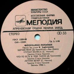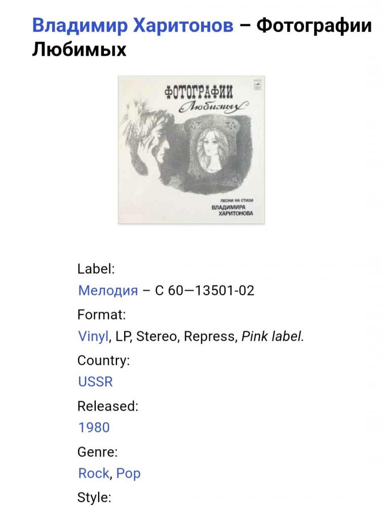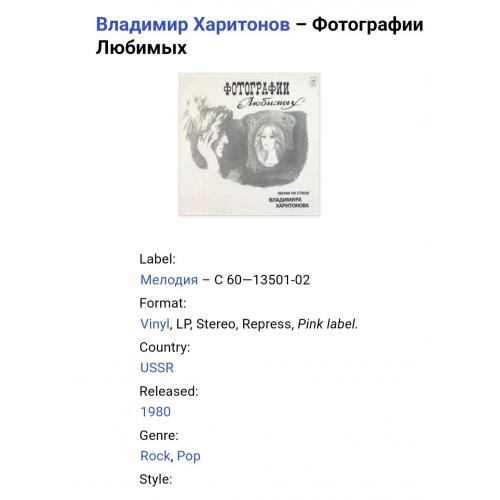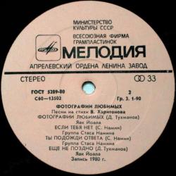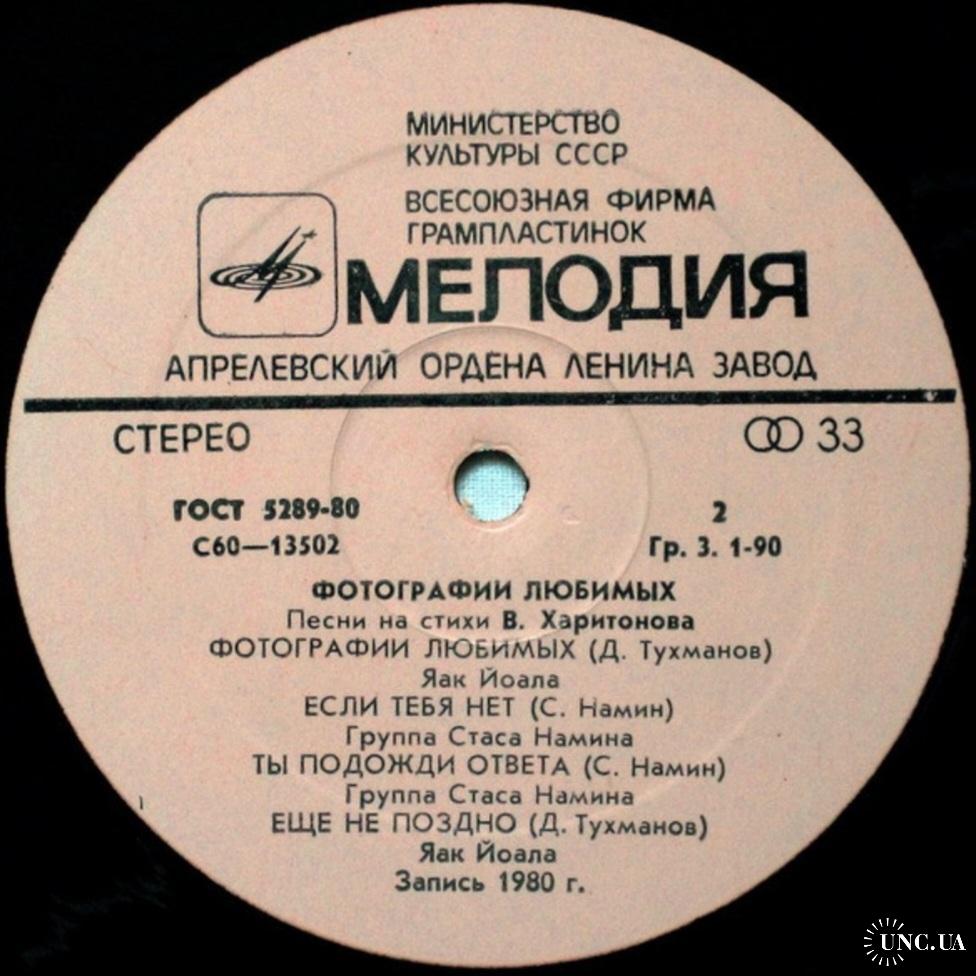 Вінілова платівка. Збірка пісень на вірші композитора Володимира Харітонова, у виконанні Естонського (радянського) поп-виконавця, покійного вже, Яак Йоали і російської (радянської) поп-рок групи Стаса Наміна (Фотографии Любимых) 1980. Випуск фірми (Мелодія) СРСР, Апрелєвський завод грамплатівок, 1980-ий рік. Оригінальне, першопресове видання. Платівка нова, неіграна, під голкою не була. Категорія М (Mint). Стан конверту NM-. Відправка по Україні службами доставки: Нова Пошта, Укр Пошта, Делівері. Також відправляємо посилки за кордон по цілому світу.
