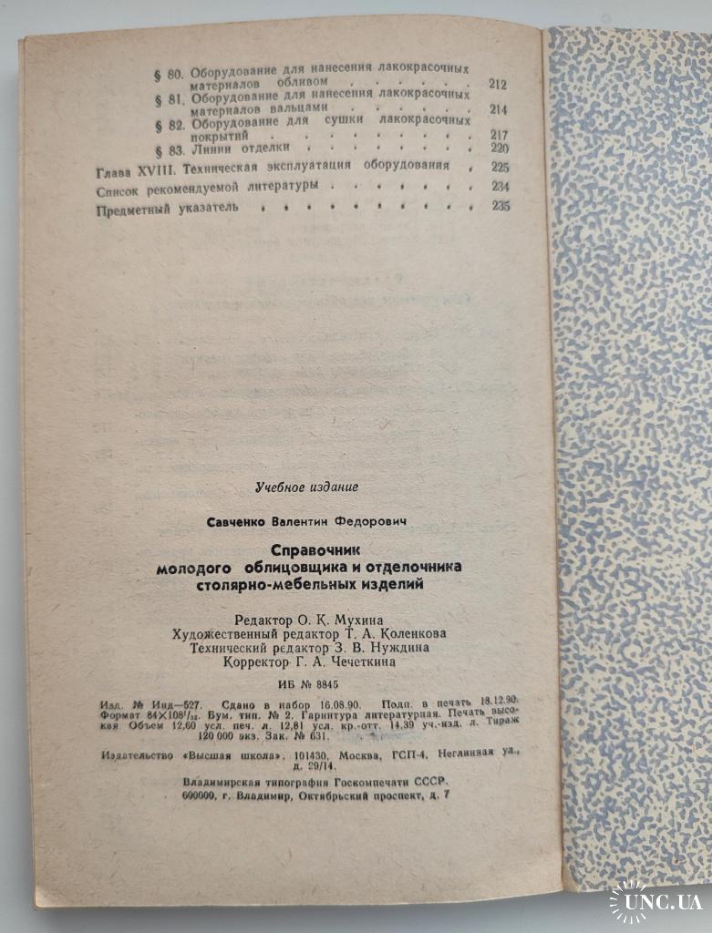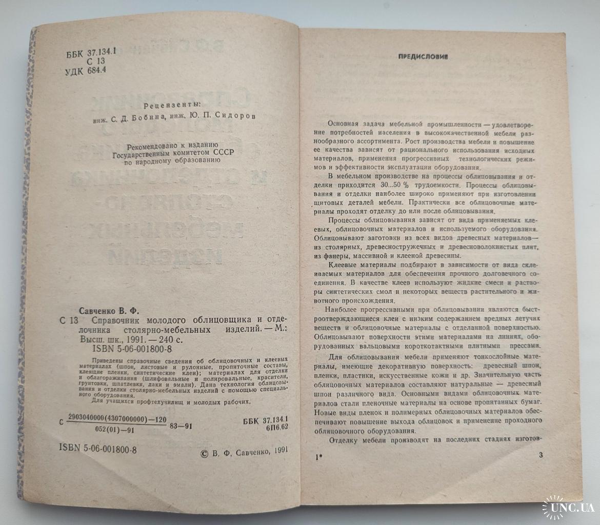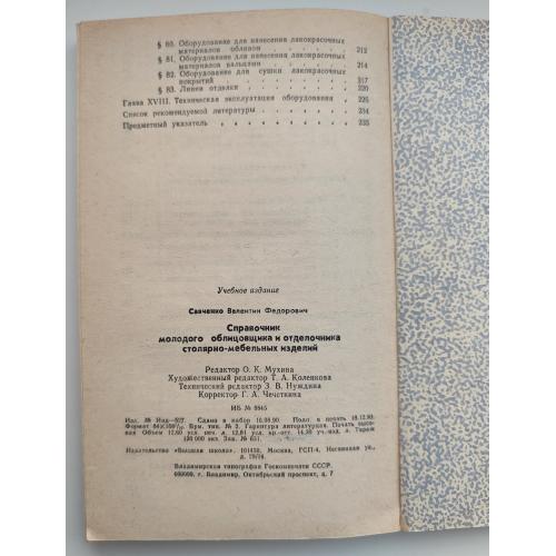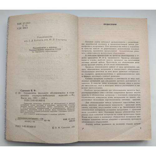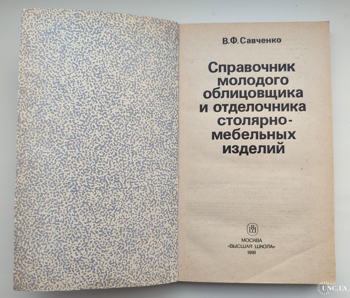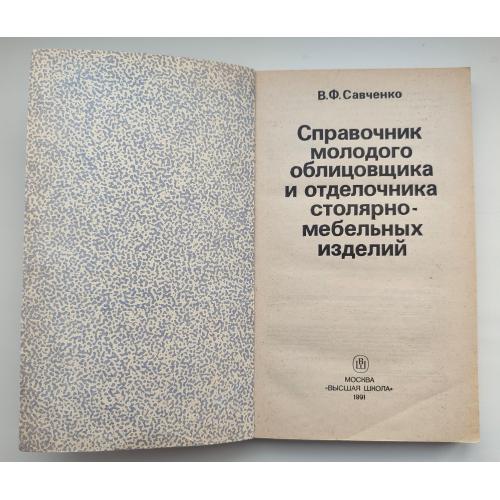 Савченко В.Ф. Справочник молодого облицовщика и отделочника столярно-мебельных изделий. М. Высшая школа. 1991г. 240 с. Мягкая обложка, Обычный формат.