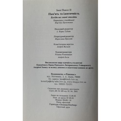 «Памʼять та ідентичність. Бесіди на зламі століть».